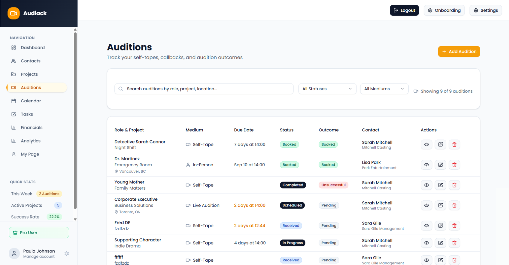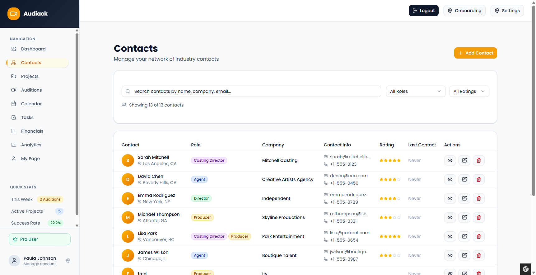 Keep casting directors, agents, and collaborators organised.