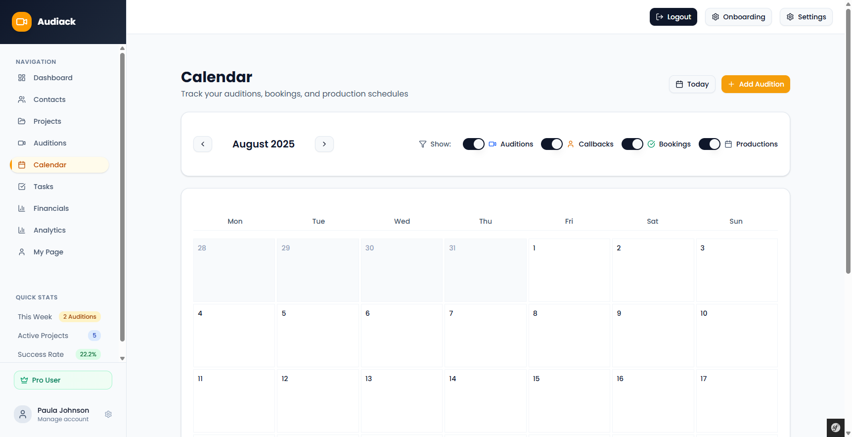 Self tapes, recalls, bookings - all in one timeline.